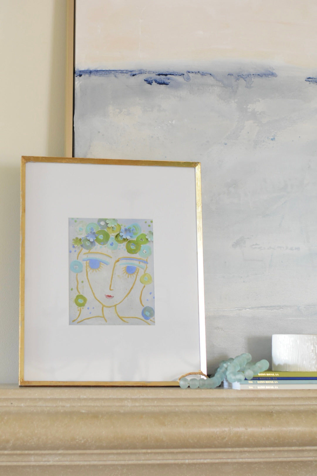 I attended an abstract art workshop in southern California and these fun faces were born! I took what I learned in the work shop and added my own ideas (3D flowers, etc.) and made them my own. They all have a personality of their own and naming them after fun destinations "Travel Girlies" just seemed perfect. This colorful girlie was one of my favorites and I was excited to create her as a print to share with you.