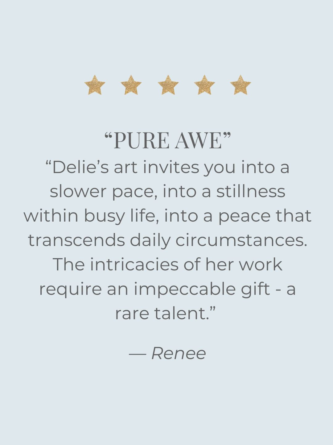 I love my pieces from Delie. They are beautiful and calming and bring me peace and joy.