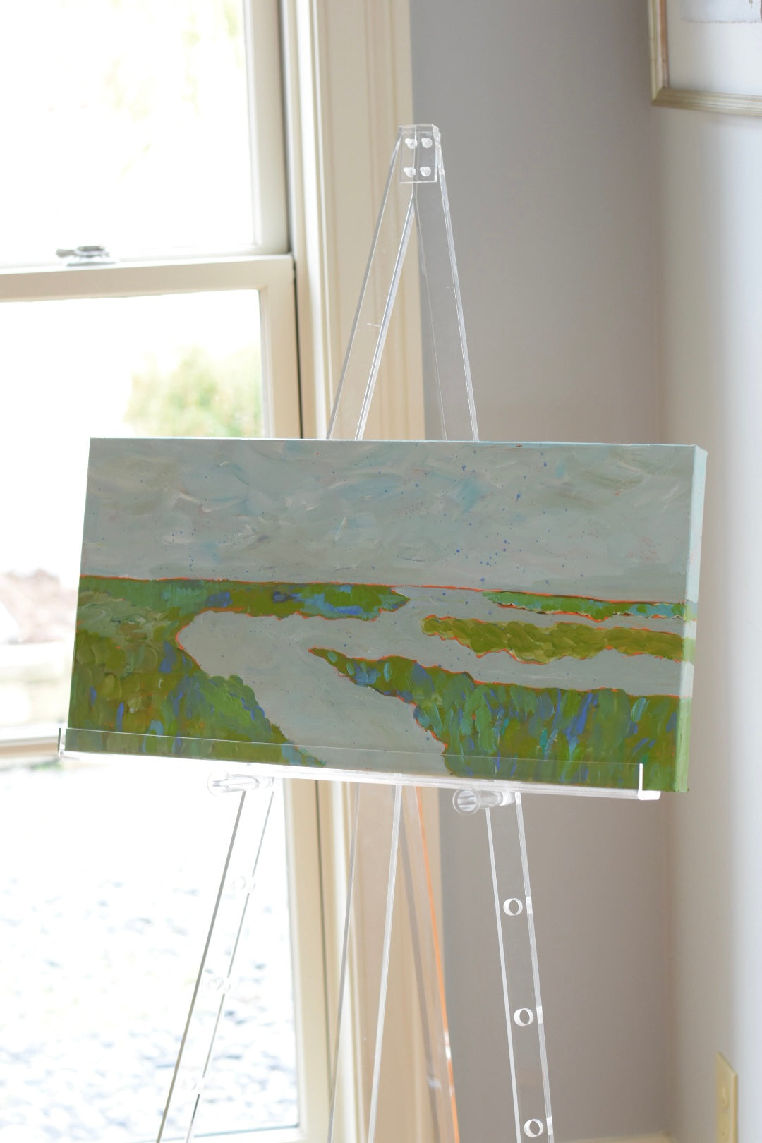 So unique in the acrylic frame. Looking at it on my wall makes me feel like I am on the beach looking out at the ocean. So serene and calming! Just beautiful!!